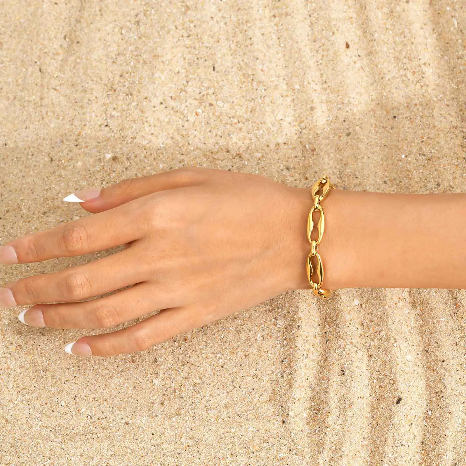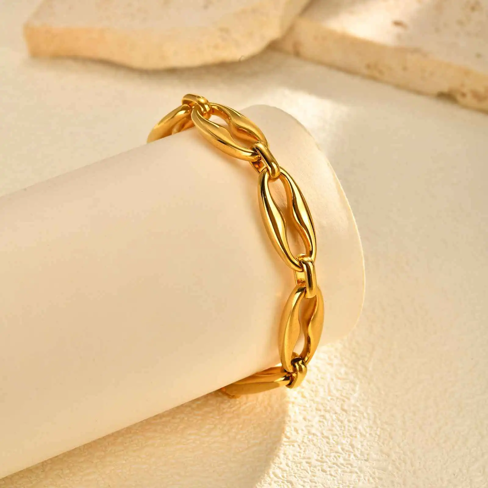 Simple Style Hand Stainless Steel Chain Bracelets Smooth Surface Lip Chain Fine Chain Link Bracelets